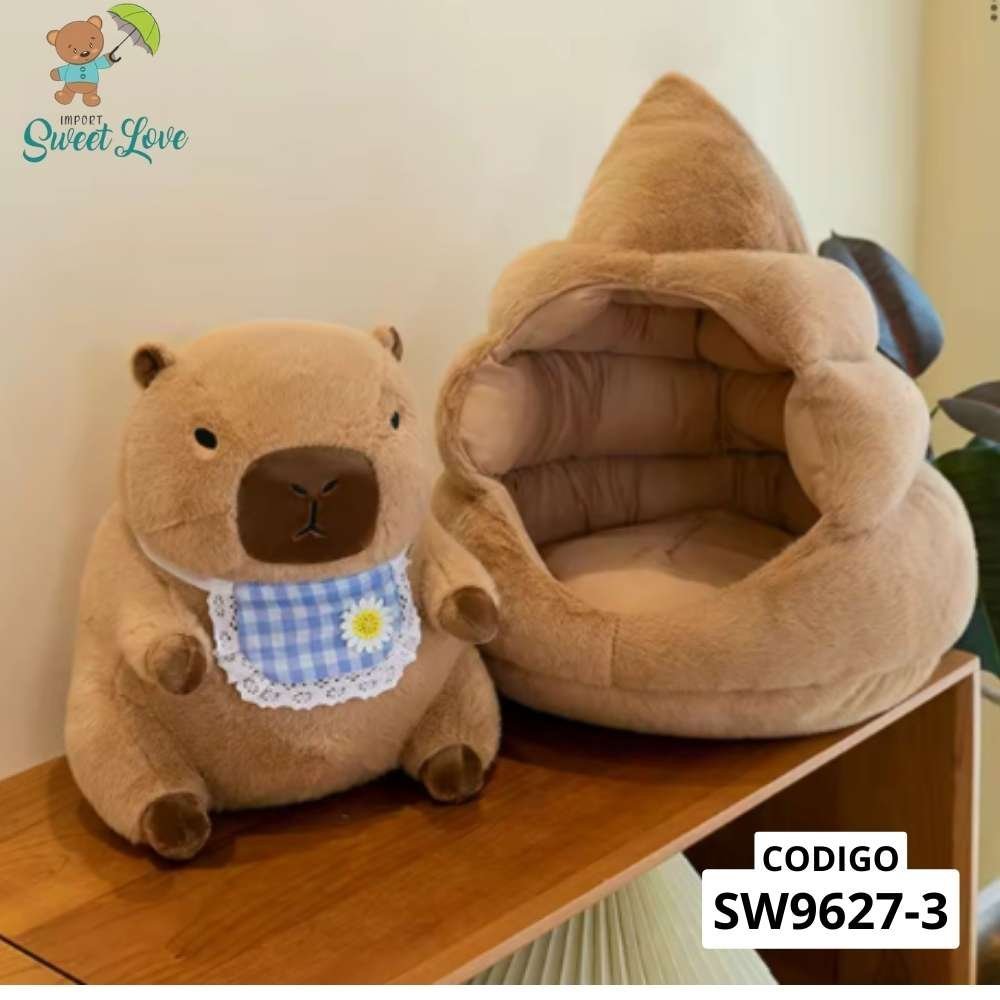 capibara casita CREMA Y ROSA 60CM – RELLENO