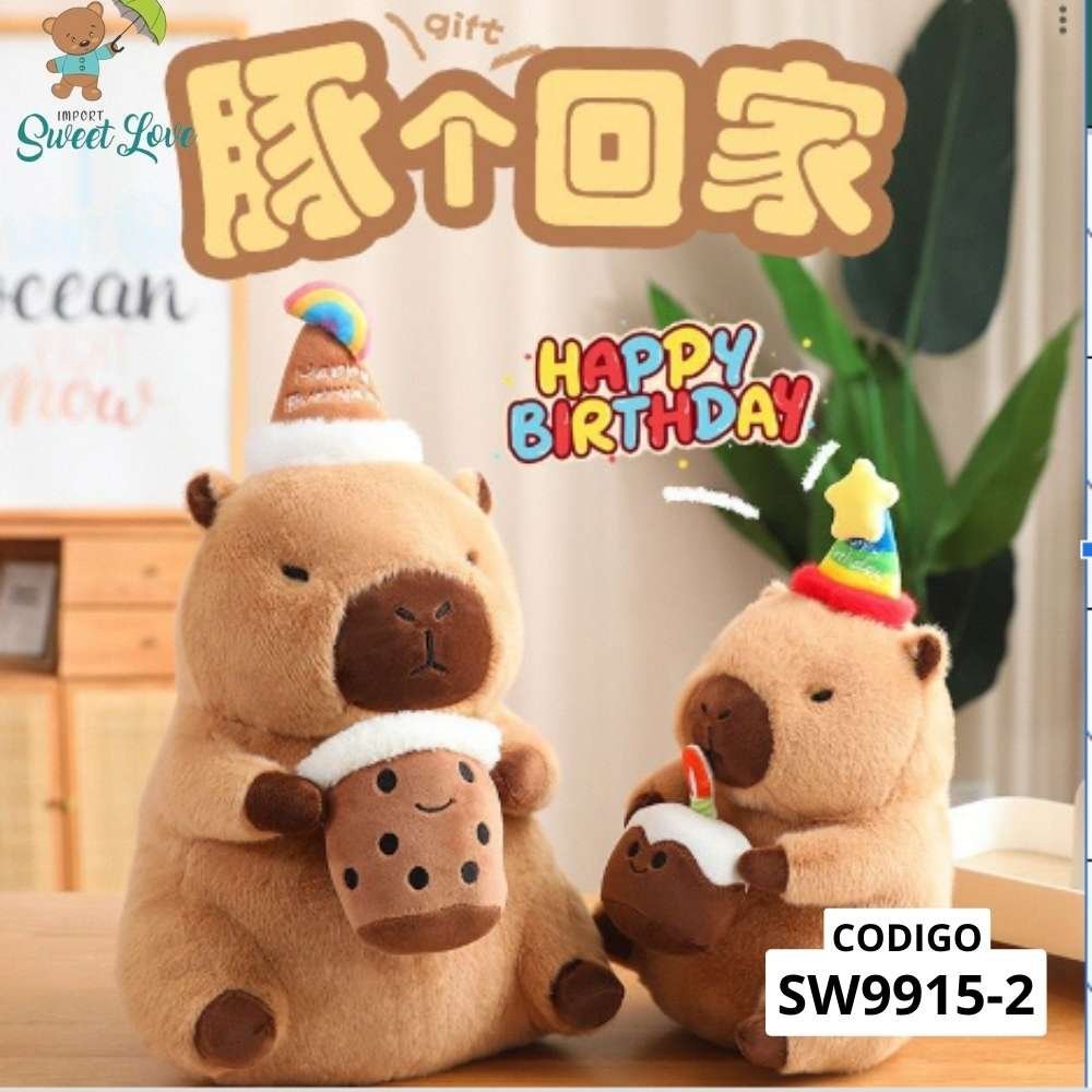 capibara con accesorios de gorra y vaso y tarta 30CM – RELLENO